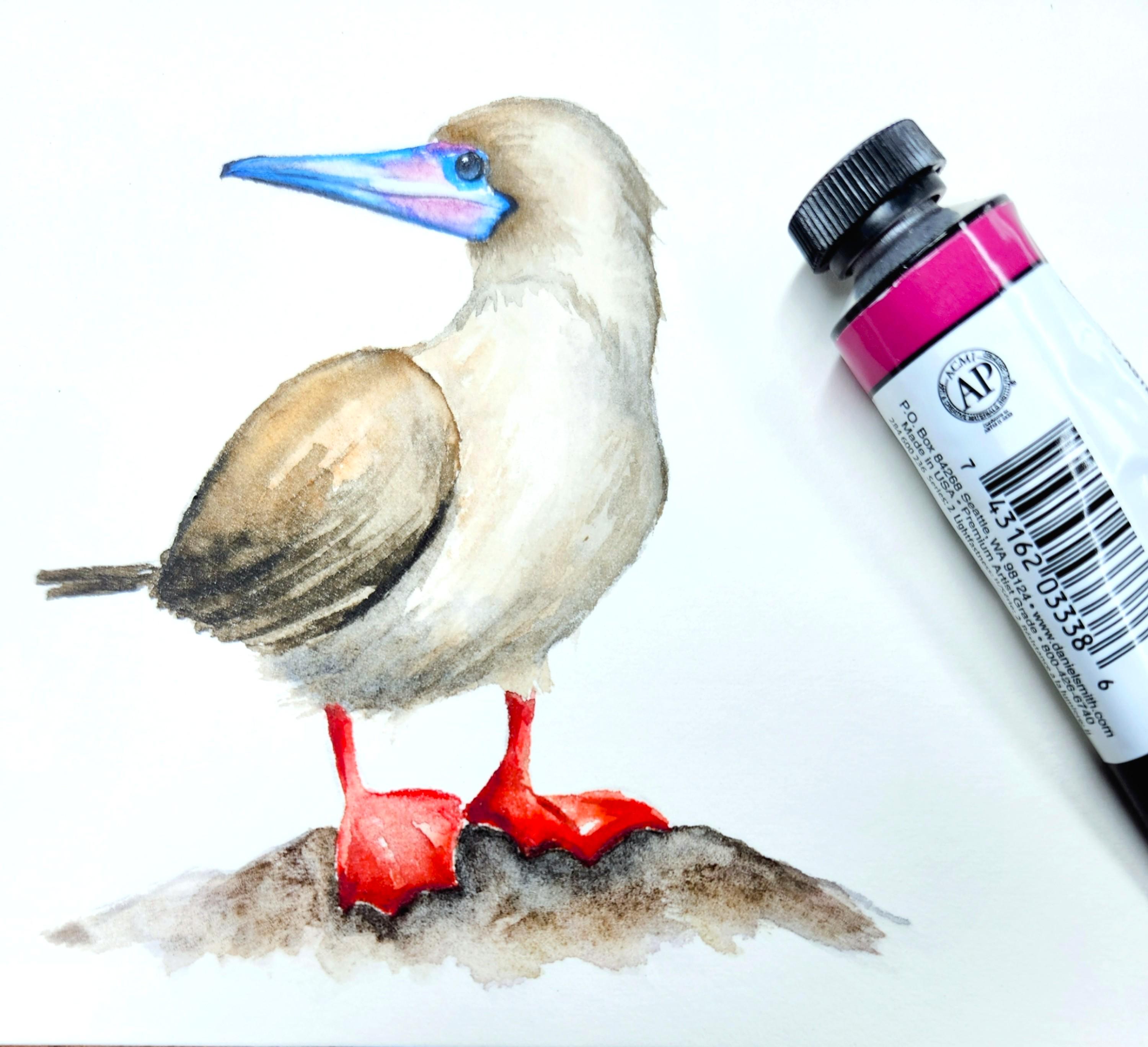 Tue, Oct 28, 2025 Red Footed Boobie "There's no place like home." The ultimate 'ruby slippers,' Day #19 Red- Footed Boobie. Cold pressed watercolor paper. Previous Post Crowned Parrot Next Post Eurasian Sparrow.